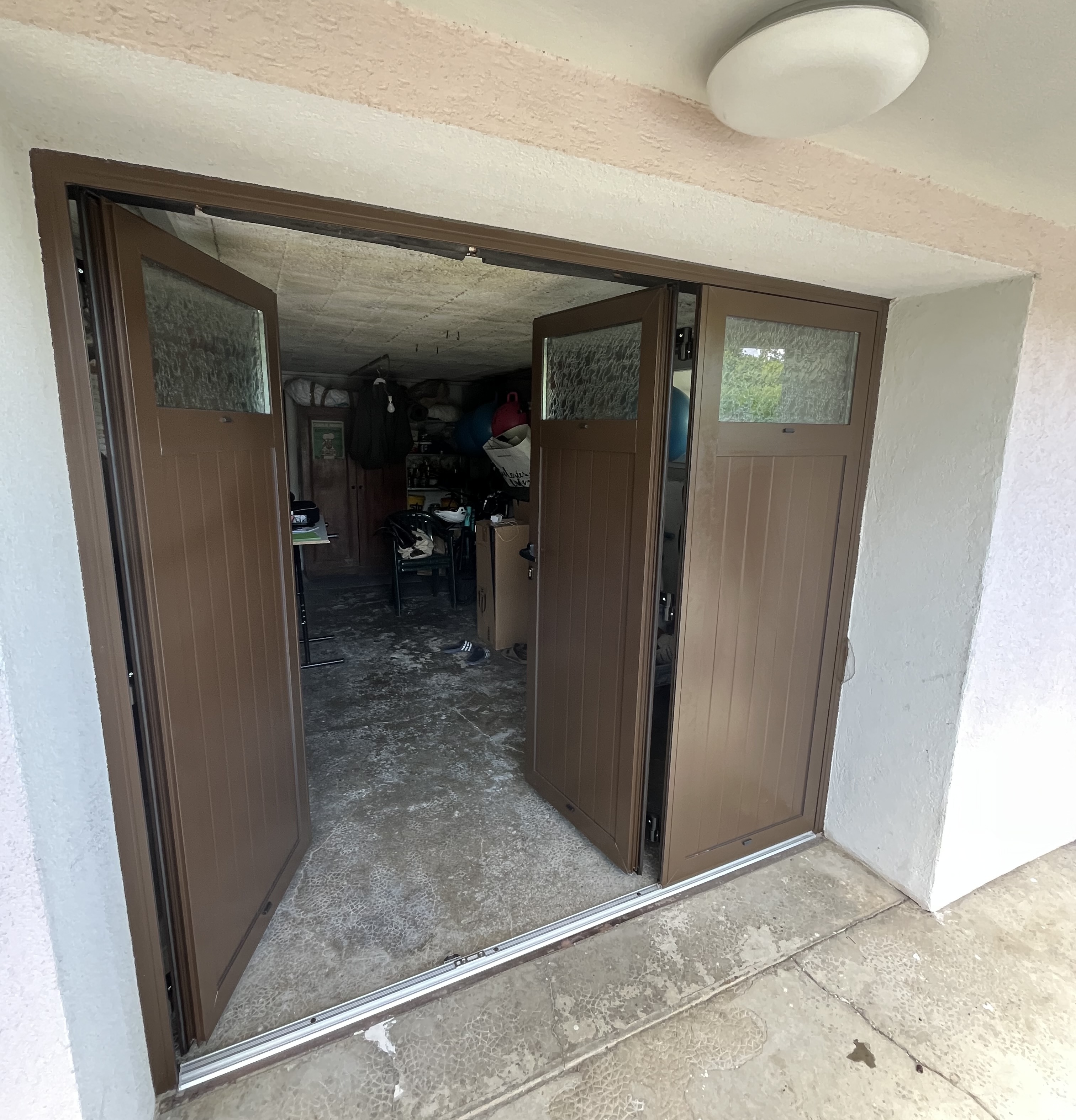 Remplacement d’une porte de garage – Aluminium brun sécurisé