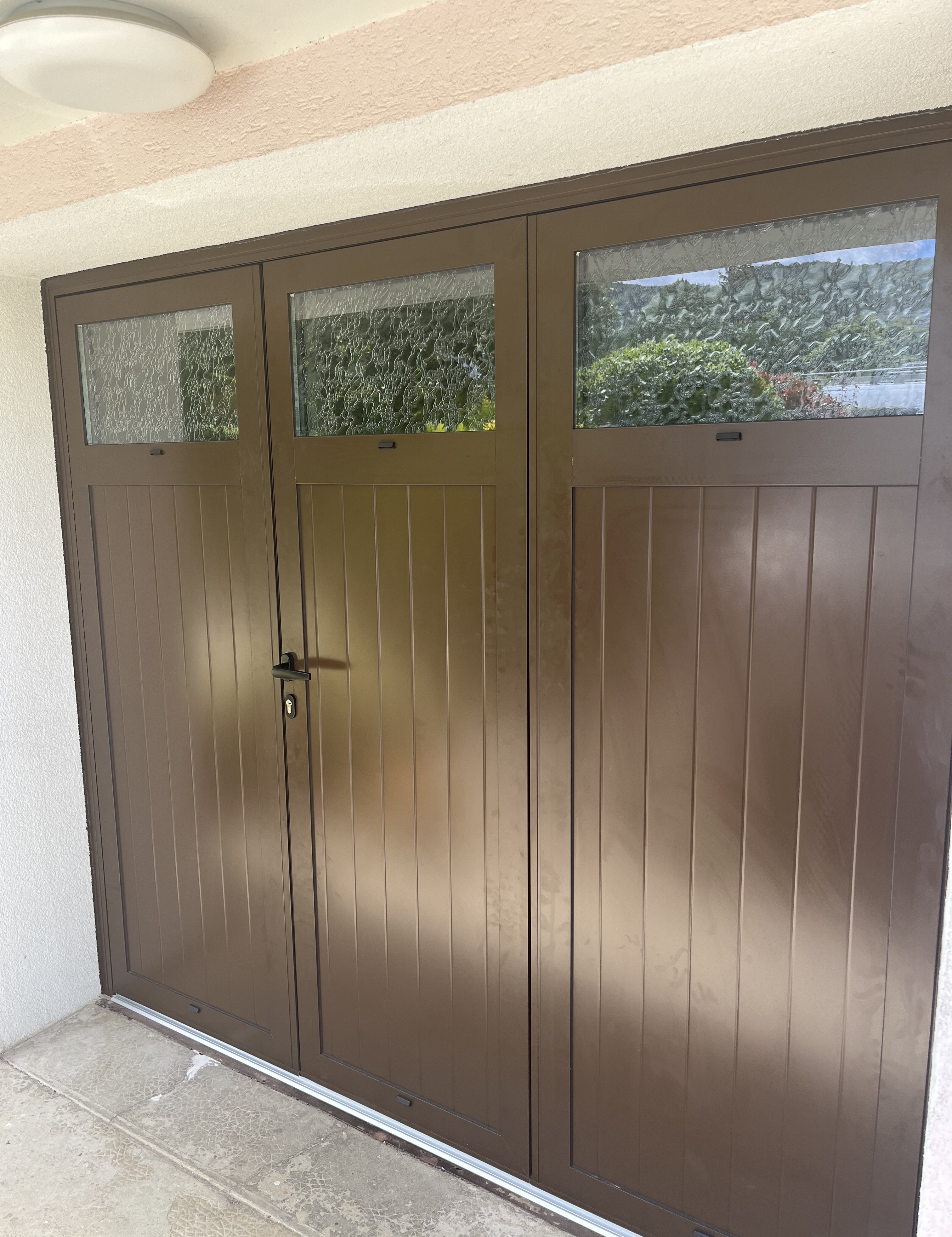 À BARBERAZ, les propriétaires souhaitaient remplacer une ancienne porte de garage vieillissante, difficile à manipuler et peu esthétique. Nous avons installé une porte de garage aluminium double battant, dotée d’un vitrage haut pour apporter de la lumière naturelle tout en préservant l’intimité. Le coloris brun et les lignes verticales s’harmonisent parfaitement avec la façade existante. Le nouveau système assure une ouverture fluide, une meilleure isolation et un confort d’utilisation au quotidien.